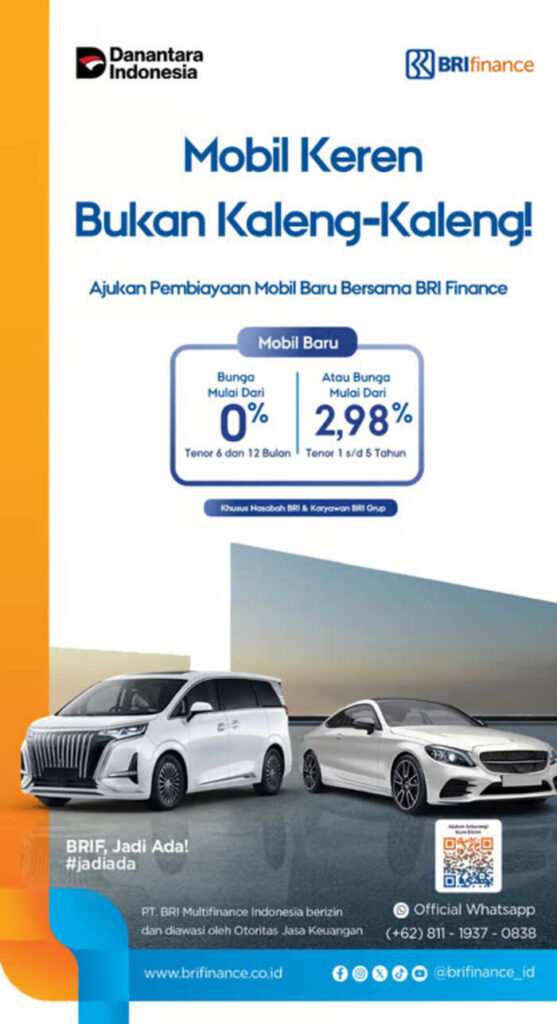 Jakarta, 5 November 2025 – Menjelang pergantian tahun, banyak orang mulai menyiapkan resolusi baru dan memberi apresiasi atas perjalanan yang telah dilalui. Momen ini sering kali menjadi waktu yang pas untuk menghadiahkan diri sendiri atau keluarga dengan sesuatu yang bernilai dan berdampak nyata, seperti memiliki mobil baru yang bisa menemani langkah di tahun mendatang. Menyambut semangat tersebut, PT BRI Multifinance Indonesia (“BRI Finance”) menghadirkan program spesial Kredit Kendaraan Bermotor (KKB) mobil baru dengan bunga 0% per tahun. Program ini memberi kemudahan bagi masyarakat untuk mewujudkan mobil impian dengan cicilan ringan, proses yang cepat, dan tanpa tambahan beban bunga sepanjang masa pembiayaan.